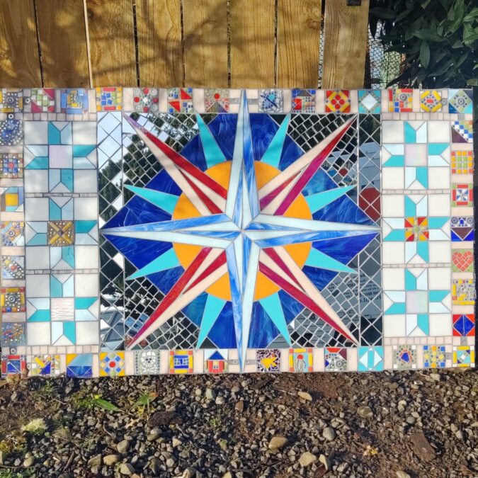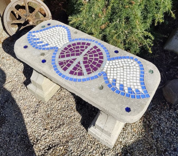 See my last post showing how the mosaic designs were created with kids in an after-school program at Auburn’s Teen Center. Now all three of the bench tops have been…