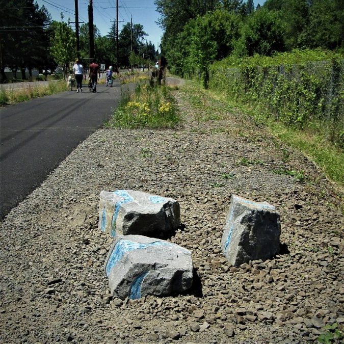 In 2020, I installed seven basalt boulders, inlaid with glass mosaic, onto three locations along a new walking-biking path in Tigard, OR. Watch a video about the project here: https://youtu.be/AQmyaWB4b3Q…