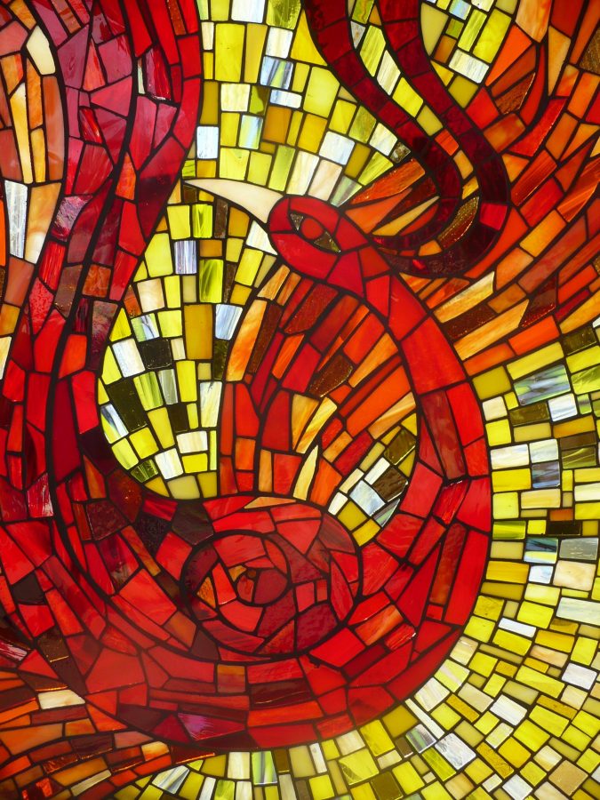 These are mosaic artworks from a series I made exploring climate change. They were made of salvaged glass, stone and boards.