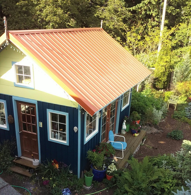 I cannot tell you what a delight it is to return to this space, made just for me. The colors are my favorite combination, it is bright and cheerful with many windows, and it is entirely surrounded by garden. A pond is at the back with a waterfall gurgling and I enjoy a view of flowers on all sides. I moved my office space to this building so that I can do admin and virtual meetings here. The smaller loft holds tools and kit components and all of my shipping can be done here. This is far more organized and tidy than it has been so far.